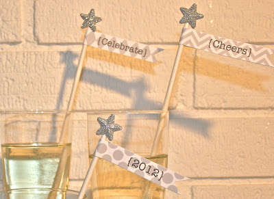 These silver and charcoal flags are the perfect accent to any New Year’s celebrations. These flags can be made into toppers for cakes or cupcakes, stir sticks for drink or wrapped around straws. I attached an adhesive glitter shape by Recollections to the top of each stick to add an extra bit of pizazz. Better yet, the flags are free. I will be happy to send you a pdf file of the flags if you do the following: