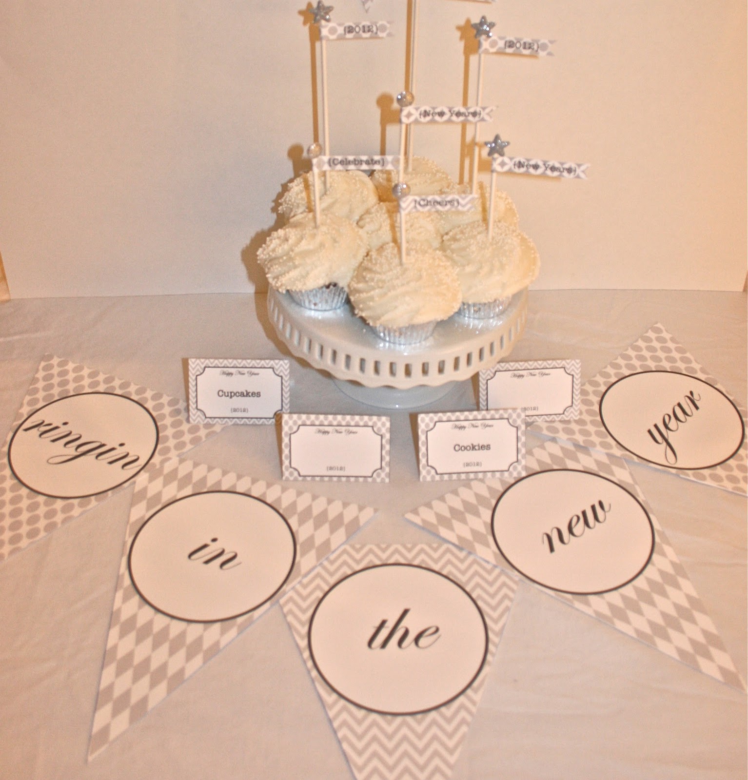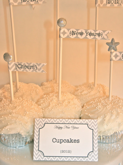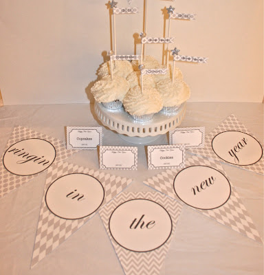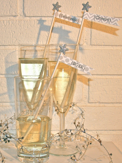 These silver and charcoal flags are the perfect accent to any New Year’s celebrations.  These flags can be made into toppers for cakes or cupcakes, stir sticks for drink or wrapped around straws.  I attached an adhesive glitter shape by Recollections to the top of each stick to add an extra bit of pizazz.  Better yet, the flags are free.  I will be happy to send you a pdf file of the flags if you do the following: