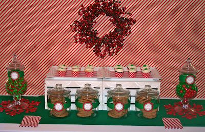 What a beautiful lunch. I am in love with the candy cane centerpiece and the red and green fruit! It is beautiful. Thanks for such great inspiration.