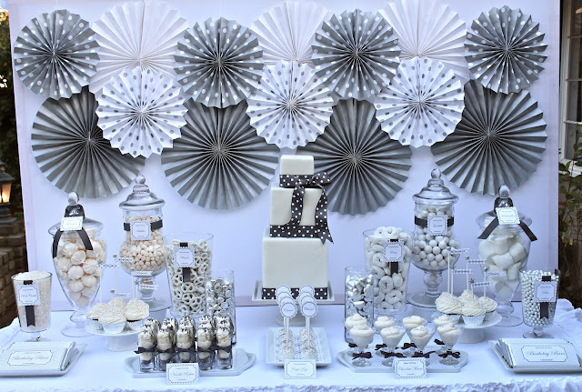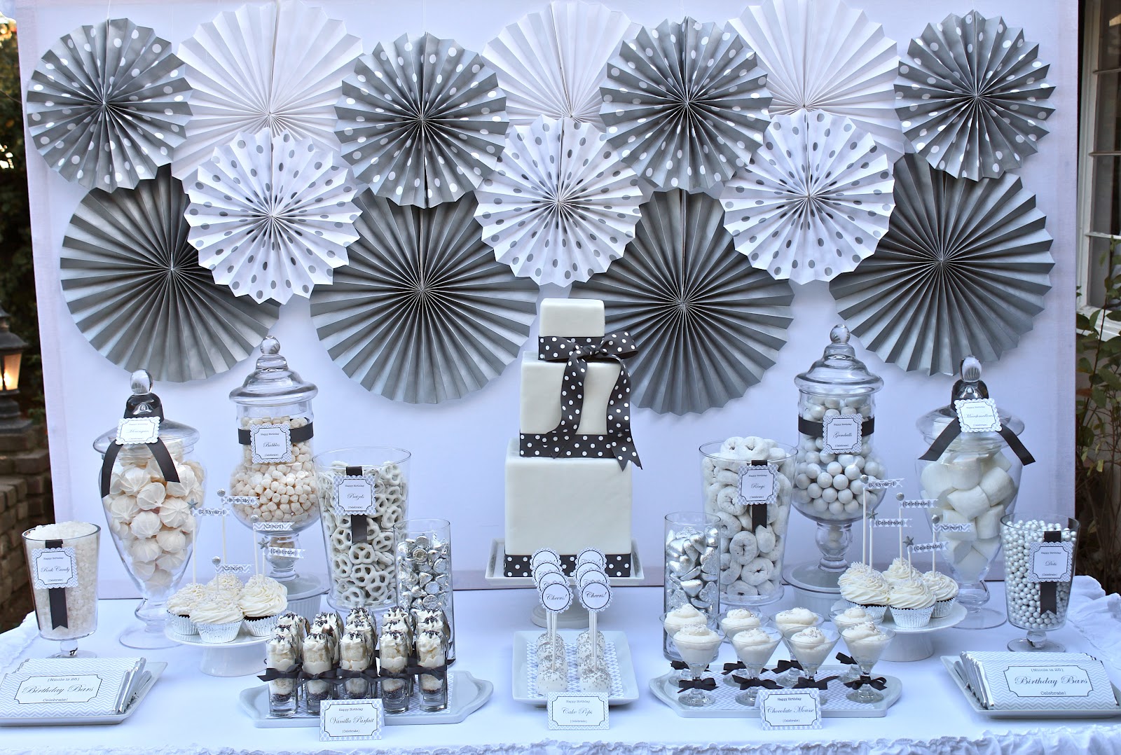 I’ve have been waiting to share my silver and white dessert table that I did for my sister’s 25th birthday/new years eve party. It was featured this week on Pizzazzerie. I loved working with this color combination. It was clean, modern, and easy to find things that fit in the color scheme. White is absolutely one of my favorite colors (black, silver and pink). Courtney Dial, founder and editor of Pizzazzerie, always says the nicest things and makes my parties look better than ever! In case you missed it on her site, here are some of my favorite photos.