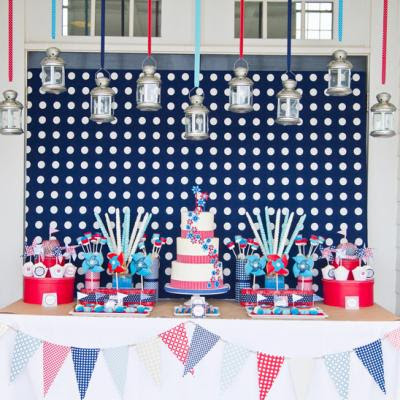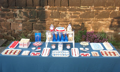 For the dessert table, stick to most red and white with blue accents.  Its hard to find food that’s dark blue. The red and white will give you a cleaner look.  Dessert table inspirations from around the web-