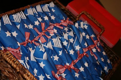 Harriet, a sweet reader, sent me an email asking for some game day ideas.  To be honest, since we always attend a party a friend’s house each Super Bowl, I hadn’t even thought about it. If I were doing a party, this is a game day I would LOVE to host.  Since both teams are red, white, and blue, you must go with the good old American theme.  For long parties like this, I like to have food that keeps well and that people can grab as they come and go.  Chili bar would work perfectly- chili, hot dogs wrapped in foil, baked potatoes if you like and all the fixing- cheese, jalapenos, bacon bits, sour cream and onions. Print the party circles above on full sheet sticker paper and put them on hot dog foil or glue them to sticks for cupcake topper.  How else can you use them?  Let me know.  Hang this TOUCHDOWN banner and you’re all set. I am happy to send you the party circles and banner if you do the following: