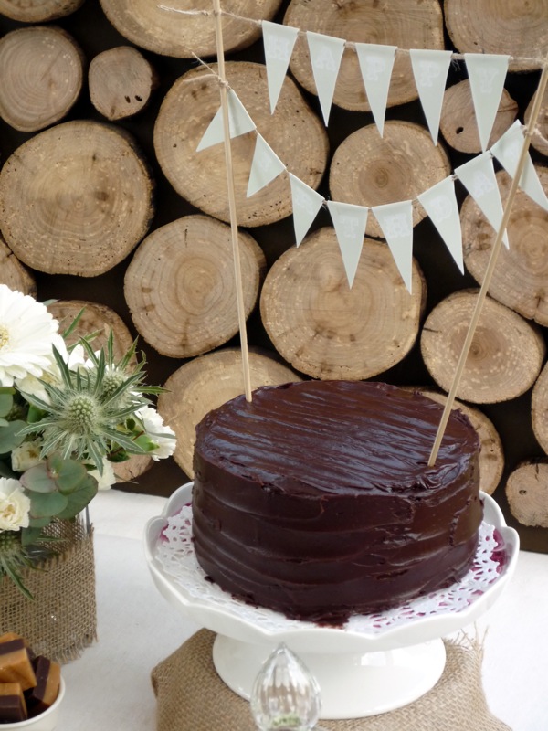 The design started with the unique wood log pile backdrop (tutorial here) I created especially for my husbands birthday. I knew this was going to be the focal point so I kept the theme natural and I tried to create an elegant display. I picked a natural palette of white, beige and brown and added some green accents in order to introduce some of my husband’s favourite Pistachio treats.