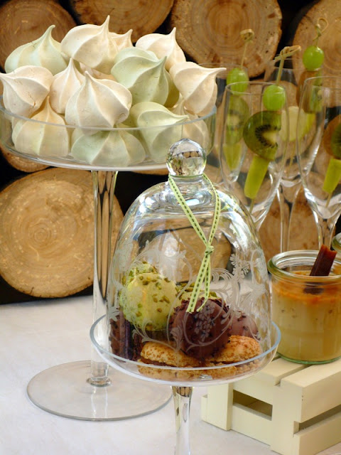 The log backdrop would also be great for a camp themed party or any fall celebration.  Thank Virginie for sharing this amazing dessert table.