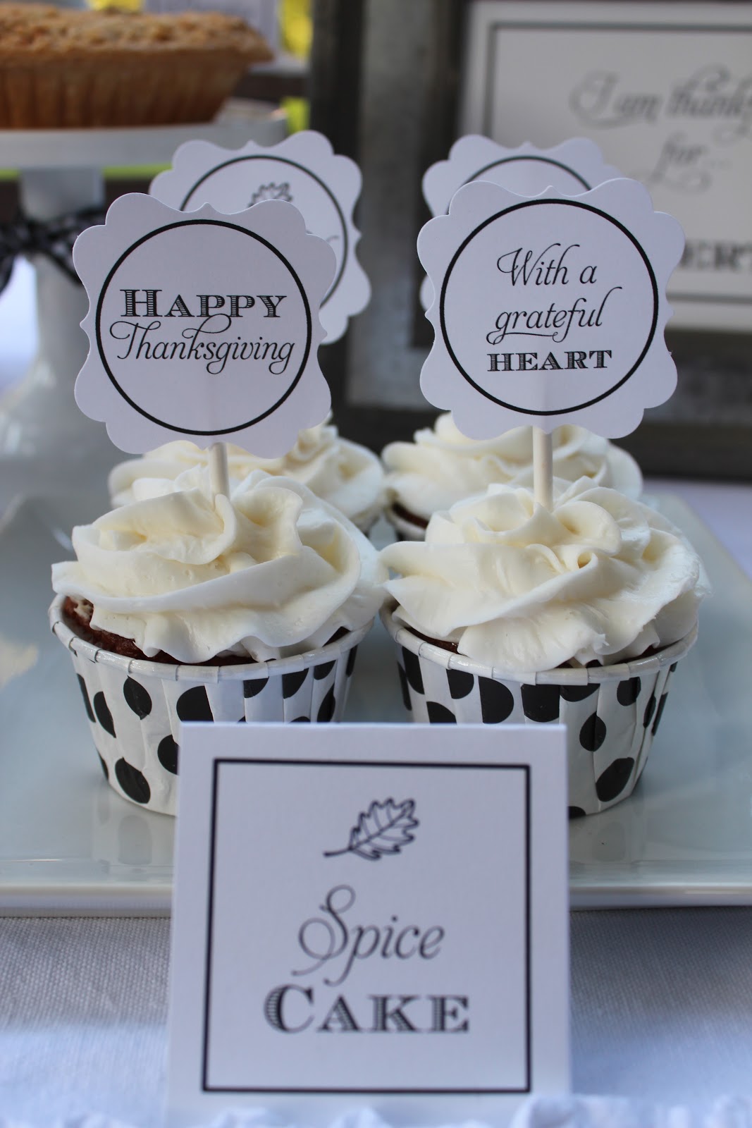Yes:) You read that right.  Thanksgiving is just over a month away.  I wanted to share these with you now so that you had time to organize your Thanksgiving parties.  These printables are based on the ones I designed for my Chili Under the Oaks Party last year.  I lived the simple black and with design which can be printed on bright white or kraft colored paper.