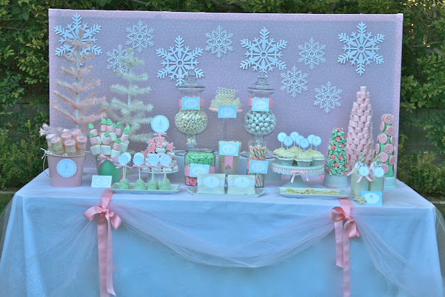 Silly me.  I realized today that I never shared the Trim A Tree themed party I hosted last year for my girls and a few of their BFF’s.  Since it was an all girls party I wanted to use a soft, pastel color theme with pink as the predominate color.  It was whimsical, pretty and magical.  As always I like to look back at old parties that I’ve hosted and see how my tastes/style has changed.  What do I still love?  The Marshmallow stick and the candy cones. However, I definitely feel that the table is a bit crowded for my tastes now.  I should have edited more so that there are more quiet places for the eye to rest.  Also, although this background is cute, now I prefer using a more simple graphic design.  The memories of the party remain the same .