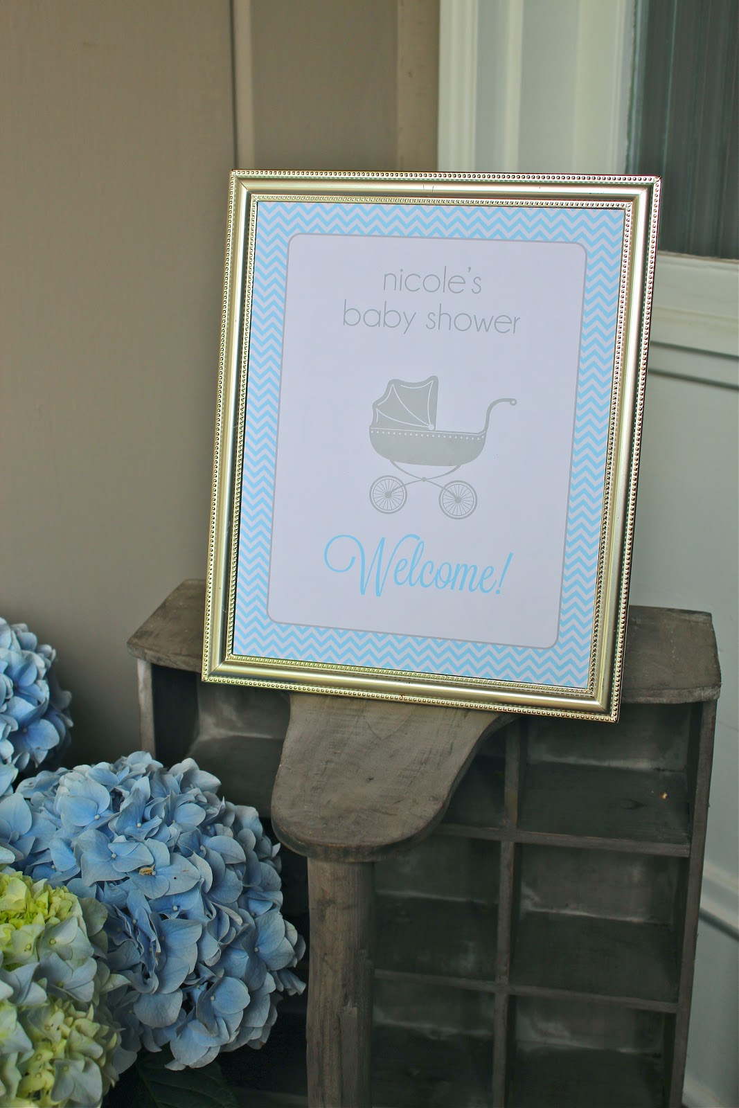 I was so excited and honored to plan and host a baby shower for my sister, Nicole, who is having her first baby.  Nicole came up with the theme of the party, Shake, Rattle and Roll and I created the images to fit each of the words in the theme- a bottle, rattle and carriage. I tried to use the shake, rattle and roll idea in all parts of the party.  Since Nicole is the writer of a fashion blog, Nicole’s Guide To Style, I wanted the shower to be feminine, sophisticated and modern just like her fashion tastes.