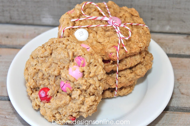 This is one of my sister’s favorite cookies from college. I love making them for Valentine’s Day because the colors of the Valentines M & M’s look so nice with the color of the dough. They also look great with the standard M & M mix.