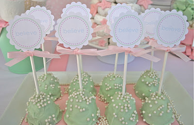 Styrofoam or paper cones are a great way to add height and color to your food tables. They can be found in most craft stores and covered with anything from paint to candy. For my Trim A Tree party, I used pink marshmallows, Christmas taffy and ribbon that held lollipops in place to cover three cones of different height. The cones accentuated the