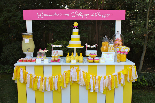 Since today in National Lollipop Day (thanks Heather!), I thought it would be the perfect time to share a lollipop and lemonade party that I did last weekend for twins. The focal point of the party was a lemonade stand. Do you recognize it? I had built a farm stand from a tutorial on Lil Luna for a previous party (apple of my eye) and